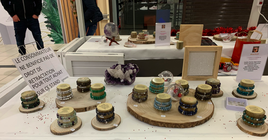 Sa spécialité la vente de rangs de ligne de perles, de qualité A, pendant ce salon perle lithothérapie vous proposera ces bracelets, et ces rangs de lignes pour vos créations personnalisées
